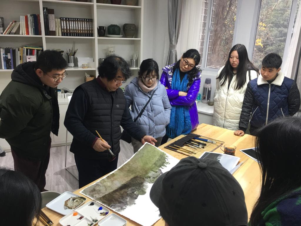 今天,劉壽祥教授愉快而迫切地在新建成的工作室完成對(duì)水彩畫(huà)專(zhuān)業(yè)研究生第一次正式授課。上午,劉教授系統(tǒng)介紹水彩畫(huà)在國(guó)內(nèi)外的發(fā)展現(xiàn)狀及當(dāng)代水彩畫(huà)創(chuàng)作最新成果,并結(jié)合自己創(chuàng)作,與水彩畫(huà)專(zhuān)業(yè)師生分享了水彩畫(huà)材料探索與創(chuàng)作理念的研究成果。午飯后,劉教授以意大利風(fēng)景題材為例,邊示范繪畫(huà),邊詳細(xì)講解在水彩材料語(yǔ)言探索上的心得。師生陶醉在教授工作室,被劉教授高超的繪畫(huà)技藝和勇于創(chuàng)新的探索精神深深折服。