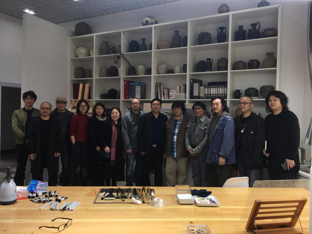 三峽大學藝術學院院長田強教授一行與我院領導教授代表在工作室合影