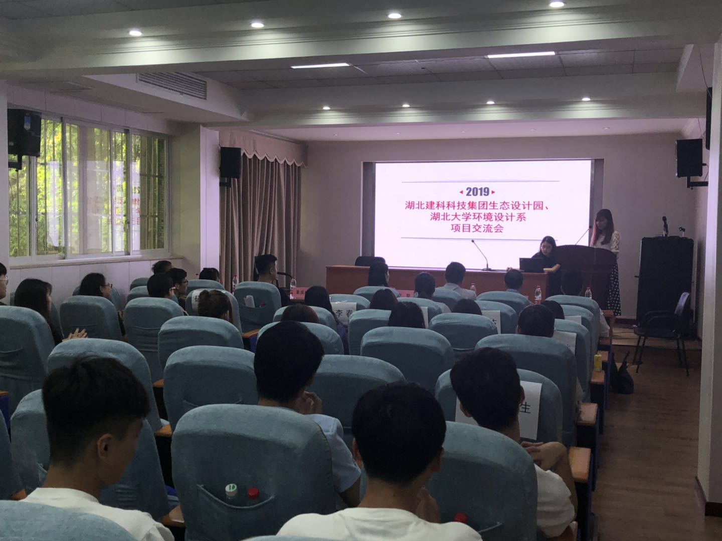 2019年7月3號上午,湖北建科集團黃健院長(生態(tài)公司總經(jīng)理),景觀方案所張海洋所長、設(shè)計師主任董成杭、設(shè)計師主任張苗、景觀設(shè)計師廖雨豪、景觀設(shè)計師黃嵐、我院華勇副院長、環(huán)境藝術(shù)設(shè)計系主任章倩礪教授、張峰教授、周李春副教授、鄒小飛教師、2018級研究生代表、2017級本科生代表、2018級本科生代表參加此次交流。交流會由18級研究生鄧鈴怡主持。