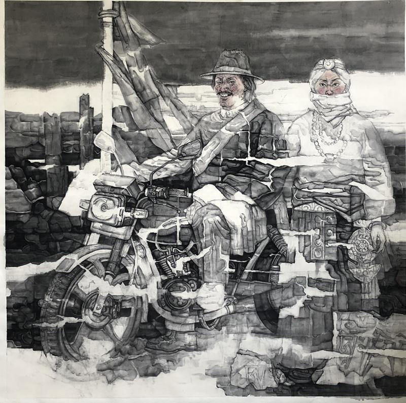 再就是要感謝各位關(guān)心和教導(dǎo)的同學(xué)和老師們,張春海也提到老師們都把機(jī)會留給了學(xué)生。尤其要感謝導(dǎo)師譚崇正先生對他時刻的教導(dǎo),譚崇正老師的教學(xué)并不是說一大堆道理,給學(xué)生套一層枷鎖,而是告訴你應(yīng)該怎樣去努力,怎樣去開闊思維和眼界,如實讓他受益匪淺。以及,獲獎并沒什么了不起,只有珍惜時間不懈努力才能無愧于心。張春海很喜歡《中庸》里講到的“唯天下至誠,為能盡其性。”他認(rèn)為只有“至誠”才可“盡其性”也,就是只有老老實實做好每一步,夯實基礎(chǔ)、不斷挖掘才能有收獲,泥土要經(jīng)過火的歷練才能成為陶瓷。張春海也有自己的藝術(shù)主張:每個人都有自己的方法和創(chuàng)作手段,事物是多種多樣的,畫畫不應(yīng)該給自己立規(guī)矩、套枷鎖,手和眼都要開闊,不斷去嘗試各種創(chuàng)作手段。以及藝術(shù)史不是發(fā)展史,而是變化史,比如古代繪畫的意味無法用現(xiàn)代畫表現(xiàn),但現(xiàn)代繪畫是現(xiàn)代思想和生活的投影,并無高下之分。
