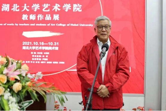 隨后,湖北大學(xué)藝術(shù)學(xué)院原黨委書(shū)記黃家發(fā)先生致辭。黃書(shū)記說(shuō),看到學(xué)院日日精進(jìn),做到了武漢城市形象口號(hào)所說(shuō)“每天不一樣”,心中萬(wàn)分欣喜!自己曾在學(xué)院工作了六年,與學(xué)院感情深厚,祝藝術(shù)學(xué)院越來(lái)越好,前途更加輝煌!