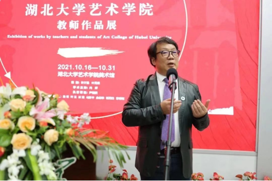 最后,全國(guó)人大常委會(huì)委員、教育部美術(shù)教學(xué)指導(dǎo)委員會(huì)副主任、廣西藝術(shù)學(xué)院原校長(zhǎng)、湖北大學(xué)客座教授鄭軍里先生宣布“術(shù)而有道”湖北大學(xué)藝術(shù)學(xué)院教師作品展開(kāi)幕。