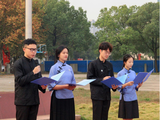 2021年11月1日(星期一)早7:00,我院與物電學院、哲學學院聯(lián)合舉行湖北大學11月升旗儀式。校學工處領導以及三個學院的院班子成員、師生代表參加了升旗儀式。