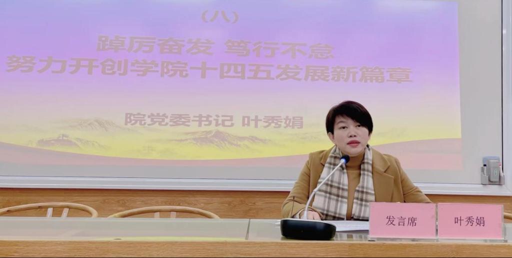 最后,院黨委書記葉秀娟作了題為《踔厲奮發(fā),篤行不怠,努力開創(chuàng)學院十四五發(fā)展新篇章》的總結講話,她指出,教職工代表大會是凝聚教職工的重要力量,是推進民主管理和監(jiān)督的重要途徑,希望教代會代表和工會繼續(xù)發(fā)揮積極作用。全院師生要進一步增強發(fā)展意識,推進學院各項事業(yè)再譜新篇;進一步增強責任意識,肩負起立德樹人的光榮使命;進一步增強團結意識,凝聚干事創(chuàng)業(yè)的奮進力量。以學院高質量發(fā)展為目標,夯實基層民主管理工作,推動學院的各項工作再上一個新臺階。