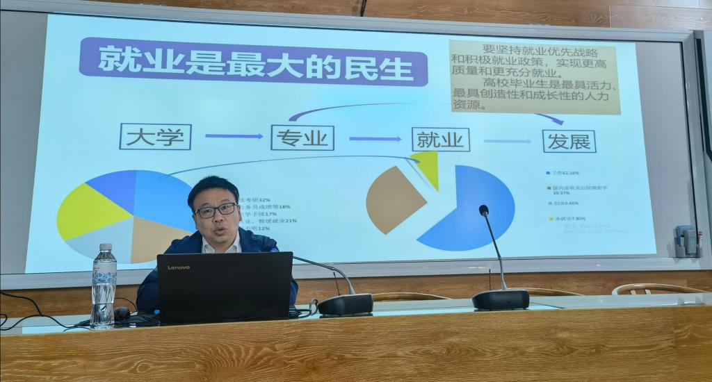 學(xué)校學(xué)工部副部長(zhǎng)肖志華首先作了2022屆畢業(yè)生就業(yè)指導(dǎo)專題輔導(dǎo)報(bào)告。肖處長(zhǎng)在輔導(dǎo)報(bào)告中介紹了學(xué)生就業(yè)狀況與學(xué)校、學(xué)院學(xué)科專業(yè)發(fā)展的密切關(guān)系,分析了2022屆本科生就業(yè)工作基本情況及面臨的形勢(shì),并結(jié)合藝術(shù)學(xué)院近幾年就業(yè)數(shù)據(jù)提出推動(dòng)畢業(yè)生就業(yè)創(chuàng)業(yè)的建議。他表示,要把就業(yè)作為學(xué)院學(xué)生發(fā)展的優(yōu)先目標(biāo),強(qiáng)化“就業(yè)工作一把手”工程;匯聚整合學(xué)院資源,構(gòu)建立體就業(yè)工作體系;推進(jìn)就業(yè)工作綜合考評(píng)。