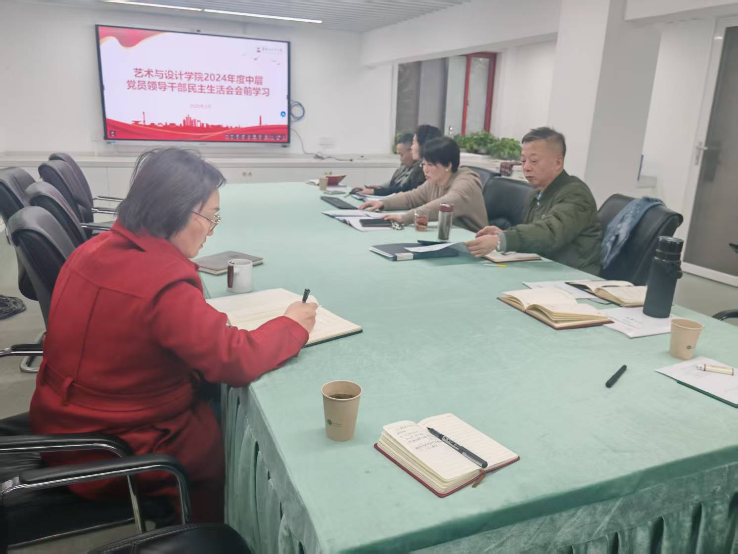 2025年2月24日下午,藝術(shù)與設(shè)計學(xué)院開展2024年度中層黨員領(lǐng)導(dǎo)干部民主生活會會前重點學(xué)習(xí)內(nèi)容集中學(xué)習(xí)暨黨委2月份理論學(xué)習(xí)中心組集中研學(xué)會,學(xué)院領(lǐng)導(dǎo)班子全體成員參加學(xué)習(xí)。會議由學(xué)院黨委書記葉秀娟主持。