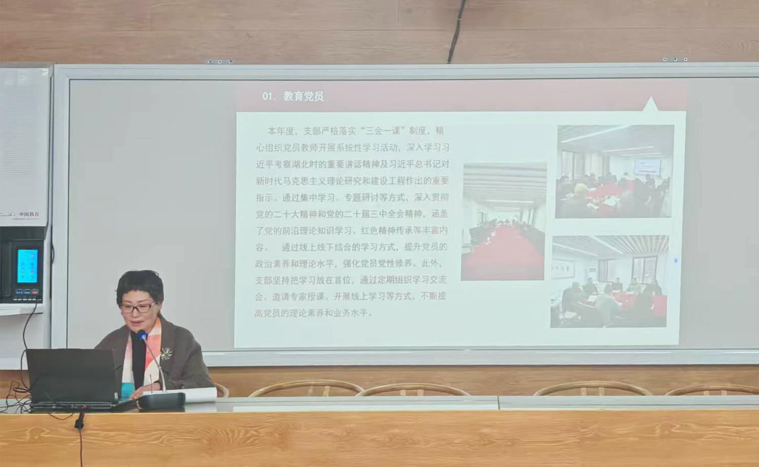 第二階段,各教工黨支部書記展示了黨支部2024年在教育黨員、管理黨員、監(jiān)督黨員、組織師生、宣傳師生、凝聚師生、服務(wù)師生等7個方面取得的工作成效,并根據(jù)支部實際情況分析當(dāng)前問題與不足,并對2025年度工作進(jìn)行展望。