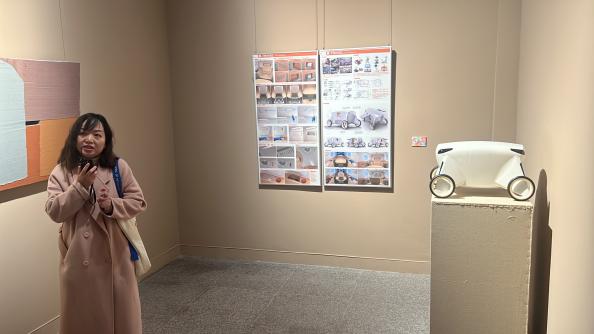 參展藝術(shù)家代表也紛紛走上前,分享各自作品背后的故事與創(chuàng)作心得。學(xué)院美術(shù)系與基礎(chǔ)課部教工黨支部書記李碧紅分享了創(chuàng)作時(shí)如何大膽嘗試、突破傳統(tǒng),通過獨(dú)特視角和創(chuàng)新手法,融合多元藝術(shù)元素,傳達(dá)作品深層內(nèi)涵,鼓勵(lì)黨員將活動(dòng)所學(xué)所感轉(zhuǎn)化為工作動(dòng)力,在藝術(shù)創(chuàng)作與教育中發(fā)揮先鋒模范作用。環(huán)境藝術(shù)設(shè)計(jì)系教工黨支部書記章倩礪講述設(shè)計(jì)作品的構(gòu)思萌芽,分享最終呈現(xiàn)出兼具實(shí)用性與審美價(jià)值的成果的設(shè)計(jì)歷程。
