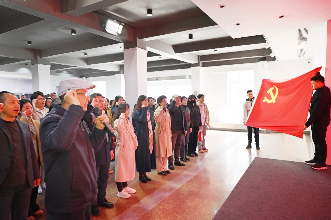 活動(dòng)伊始,在省美術(shù)院黨委書記李和清帶領(lǐng)下,全體黨員面向鮮紅黨旗,高舉右拳,重溫入黨誓詞。“我志愿加入中國共產(chǎn)黨……”鏗鏘有力的誓言在館內(nèi)久久回蕩,讓每一位黨員再次深刻領(lǐng)悟黨的初心使命,堅(jiān)定為黨的藝術(shù)事業(yè)奮斗理想信念。