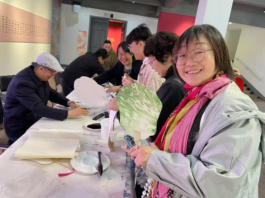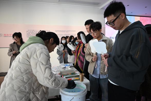 隨后,同志們積極參與了現(xiàn)場(chǎng)藝術(shù)創(chuàng)作體驗(yàn)活動(dòng)。版畫拓印、漆扇制作、書法展示、繪畫創(chuàng)作……大家以黨建元素和荊楚文化為靈感,將學(xué)習(xí)的感悟和對(duì)未來的美好期許化墨為字、落筆成花,共繪兩院合作共建新畫卷。