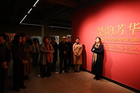 在實(shí)地互動(dòng)黨課環(huán)節(jié),湖北省美術(shù)院黨委委員、副院長(zhǎng)謝曉紅以“行走的黨課”形式作現(xiàn)場(chǎng)導(dǎo)覽,詳細(xì)解讀湖北女性藝術(shù)家群體在黨的文藝方針的指引下,牢記新時(shí)代所賦予女性的歷史使命,不斷深入廣闊的時(shí)代現(xiàn)場(chǎng)和藝術(shù)現(xiàn)場(chǎng),以生動(dòng)的藝術(shù)實(shí)踐和卓越的藝術(shù)創(chuàng)造,為當(dāng)代湖北美術(shù)生態(tài)帶來的全新藝術(shù)視野和多元表達(dá),并深入介紹了湖北女性藝術(shù)家在挖掘、展示和弘揚(yáng)荊楚文化方面作出的突出貢獻(xiàn)。