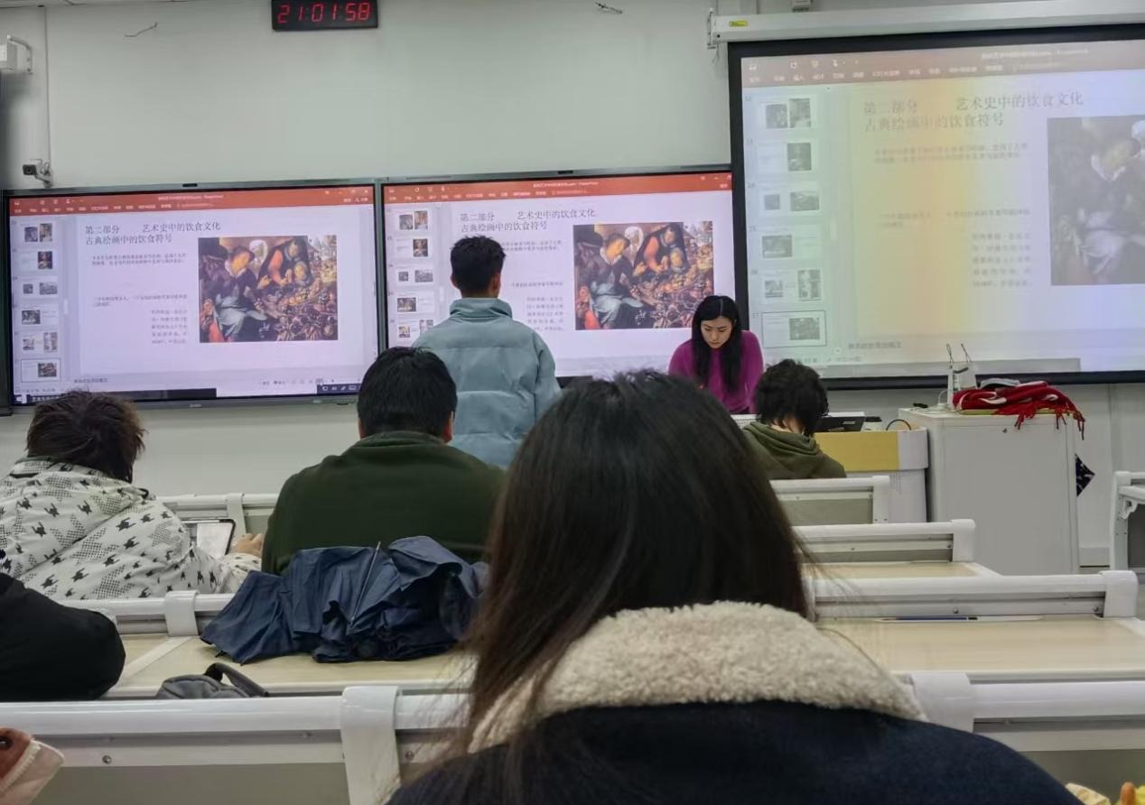 3月12日晚,我院青年教師代表向垚老師帶來(lái)以“藝術(shù)與飲食”為主題的《設(shè)計(jì)導(dǎo)論》課,帶領(lǐng)學(xué)生體驗(yàn)了一場(chǎng)從畫(huà)布到餐桌的文化之旅。講座由龍?jiān)淌谥鞒郑私?00名學(xué)生就座。