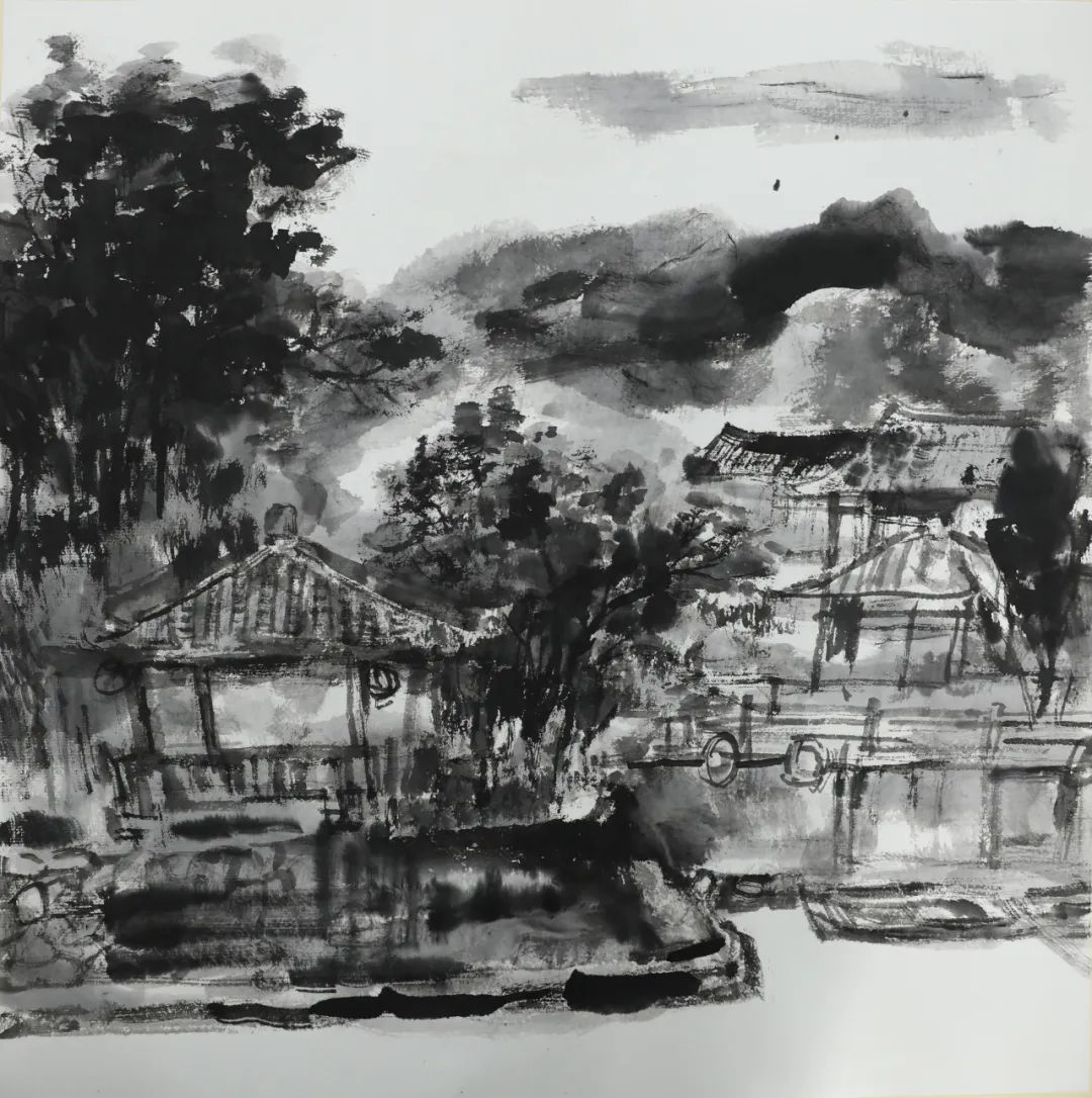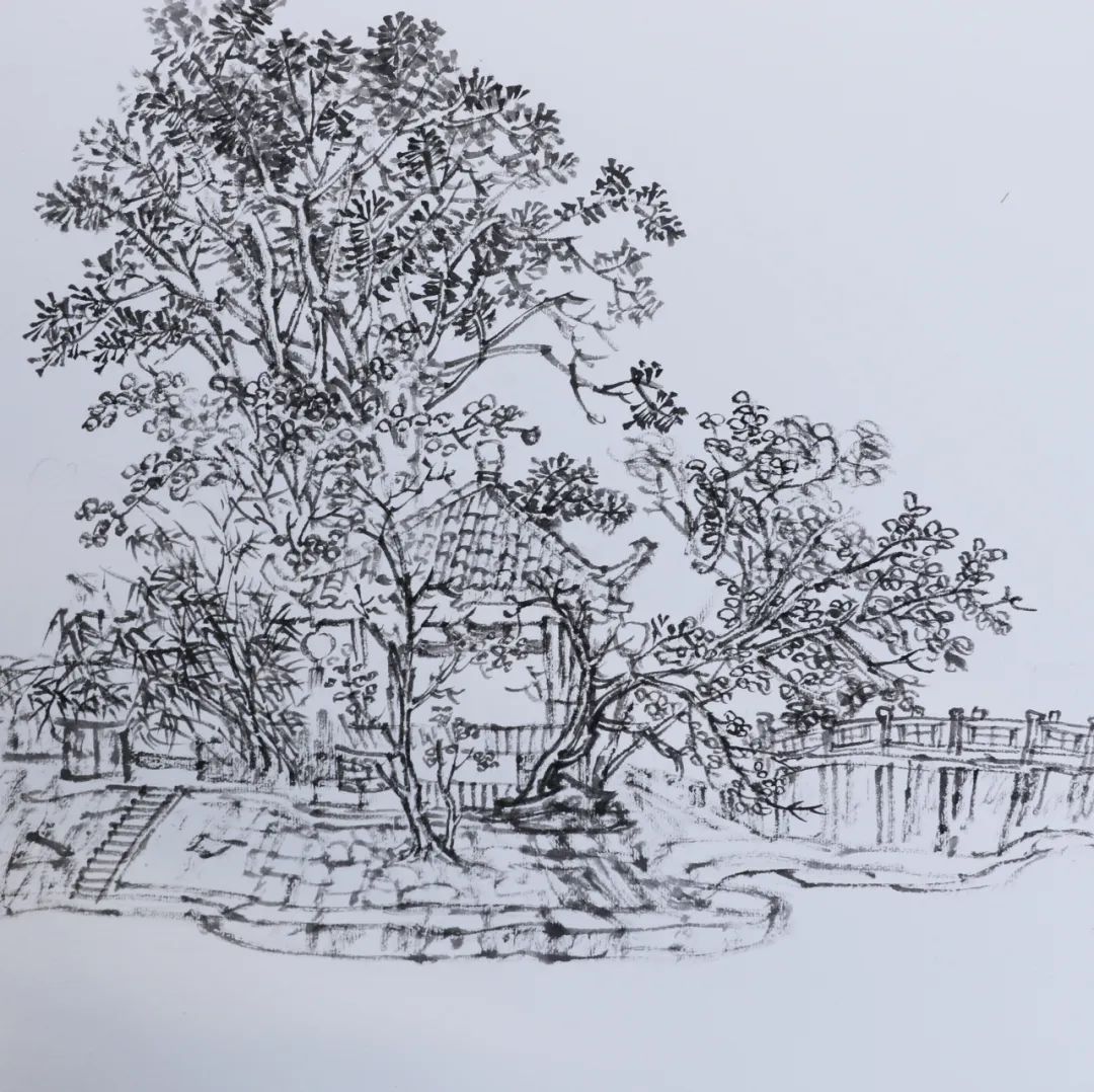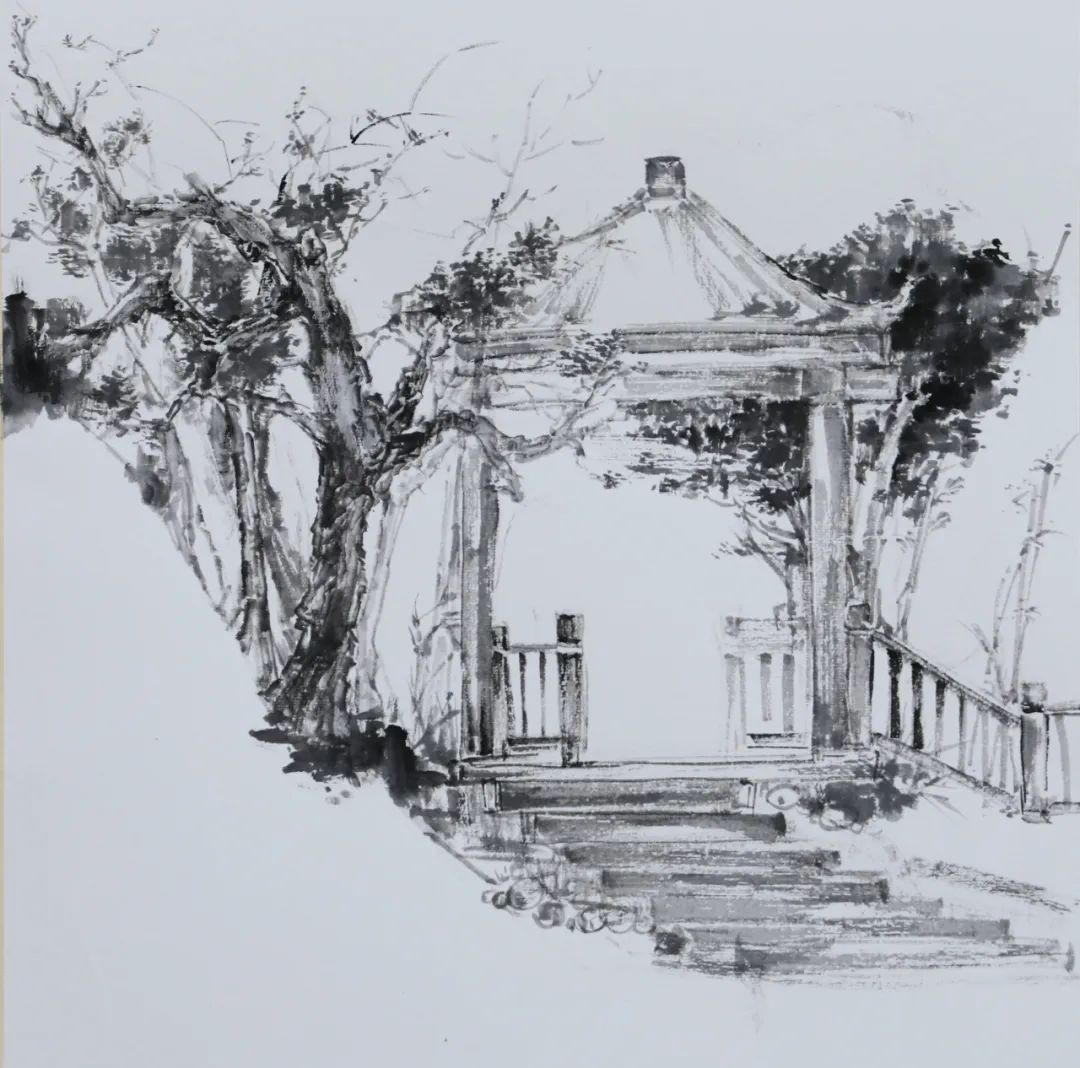 下午,在董老師工作室觀摩學(xué)習(xí)之后,一場(chǎng)以水墨為媒、以自然為師的寫(xiě)生活動(dòng)在美術(shù)館徐徐展開(kāi)。