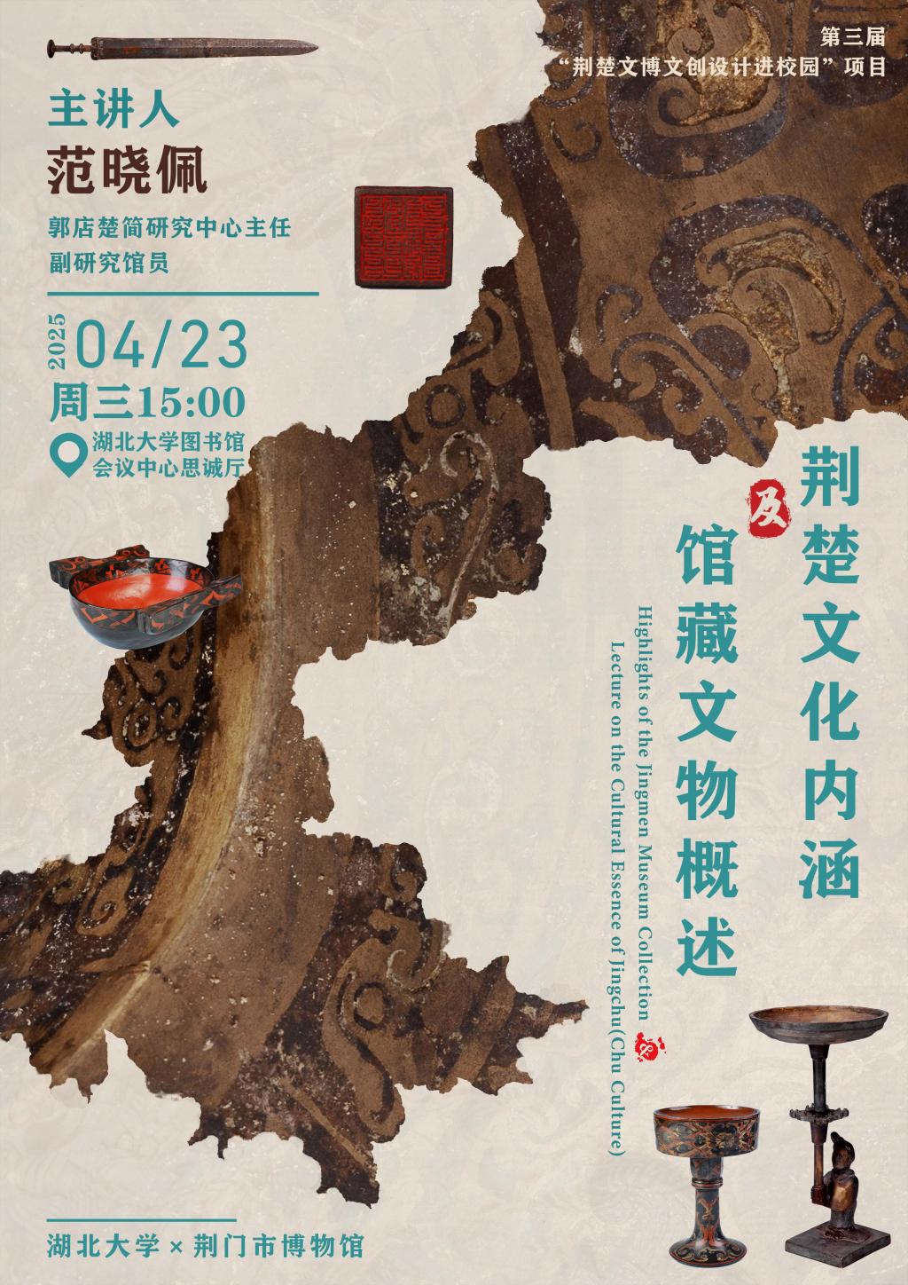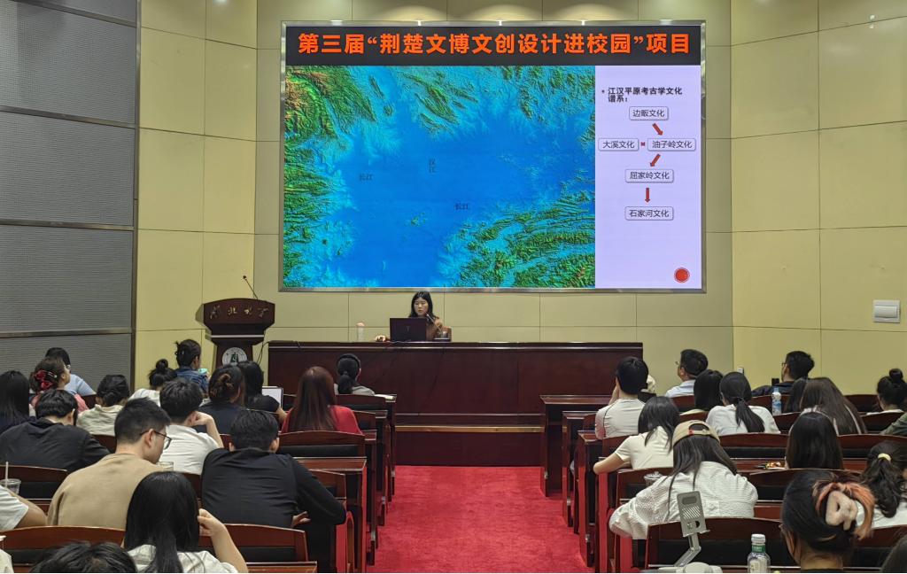 郭店楚簡研究中心主任范曉佩以"荊楚文化內(nèi)涵及荊門市博物館館藏文物概述"為題講座,為師生帶來一場(chǎng)文化盛宴。從邊畈文化肇始到石家河文明演進(jìn),從楚式銅鏡的紋飾密碼到漆木女俑的工藝美學(xué),通過城河遺址沙盤演示、郭店楚簡數(shù)字化展示等多元形式,系統(tǒng)梳理了荊楚文化七千年傳承脈絡(luò)。重點(diǎn)解讀館藏珍品中蘊(yùn)含的設(shè)計(jì)智慧:谷紋玉器的禮制象征、鳳鳥紋漆盒的審美范式,為文創(chuàng)設(shè)計(jì)提供了豐富的靈感源泉,講座由產(chǎn)品設(shè)計(jì)系王紅教授主持。