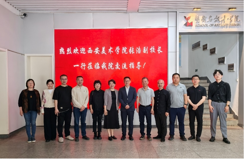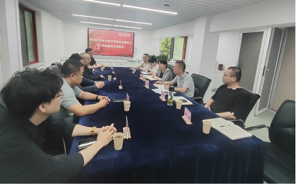 4月27日上午,西安美術(shù)學(xué)院副校長(zhǎng)張浩、教務(wù)處處長(zhǎng)郭繼峰、藝術(shù)設(shè)計(jì)學(xué)院院長(zhǎng)張犁、藝術(shù)教育學(xué)院院長(zhǎng)黃勤科一行6人來(lái)我院調(diào)研。學(xué)院黨委書(shū)記葉秀娟、院長(zhǎng)葉云、副書(shū)記談?dòng)矜谩⒏痹洪L(zhǎng)潘鋒、余日季參加座談會(huì),會(huì)議由葉秀娟書(shū)記主持。