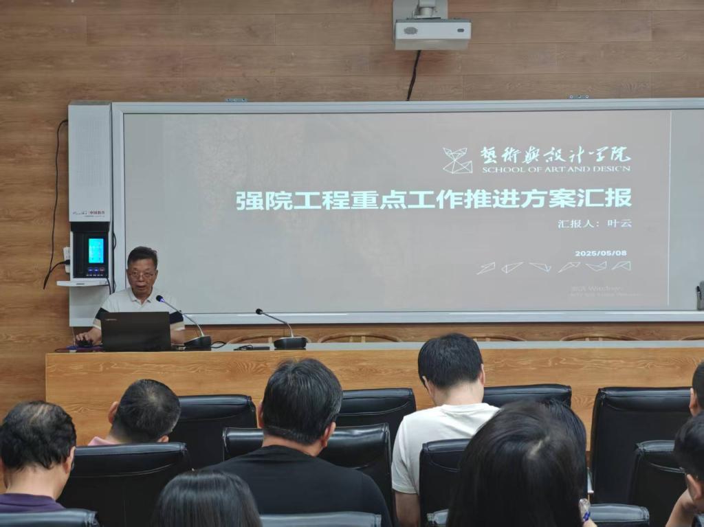 2025年5月22日下午,藝術(shù)與設(shè)計學(xué)院召開5月全院教職工大會。會議圍繞學(xué)科評估與建設(shè)規(guī)劃、強(qiáng)院工程推進(jìn)實施等主題展開,全院教職工共同參與學(xué)習(xí)與討論。