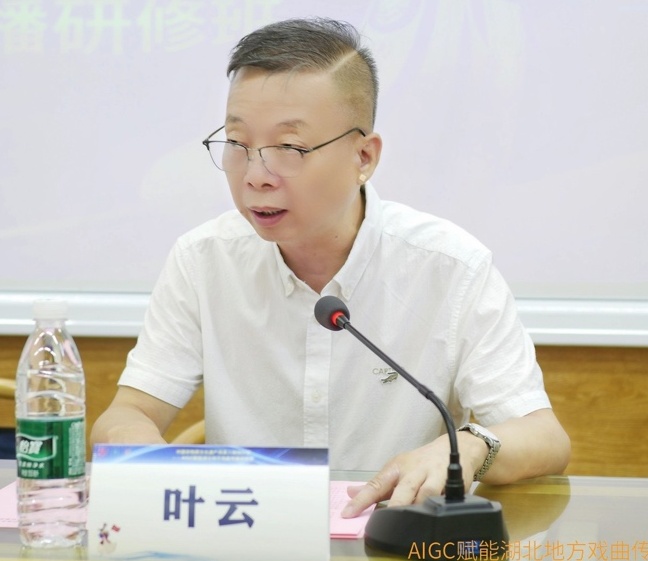 學(xué)院院長(zhǎng)葉云教授發(fā)言,他表示非物質(zhì)文化遺產(chǎn)是民族文化生生不息的精神根脈,是文化瑰寶。現(xiàn)在,以人工智能生成內(nèi)容(AIGC)為代表的新興技術(shù)迅猛發(fā)展,深刻改變著信息傳播與藝術(shù)創(chuàng)作的形態(tài),為傳統(tǒng)戲曲的傳承傳播既帶來(lái)了挑戰(zhàn),又帶來(lái)了機(jī)遇。湖北大學(xué)藝術(shù)與設(shè)計(jì)學(xué)院多年來(lái)始終致力于推動(dòng)藝術(shù)與科技的融合創(chuàng)新,并取得了諸多重大成果。因此,學(xué)院將積極發(fā)揮各方面資源優(yōu)勢(shì),助力項(xiàng)目的順利實(shí)施與完成。同時(shí),他對(duì)參與培訓(xùn)的學(xué)員寄予了厚望。