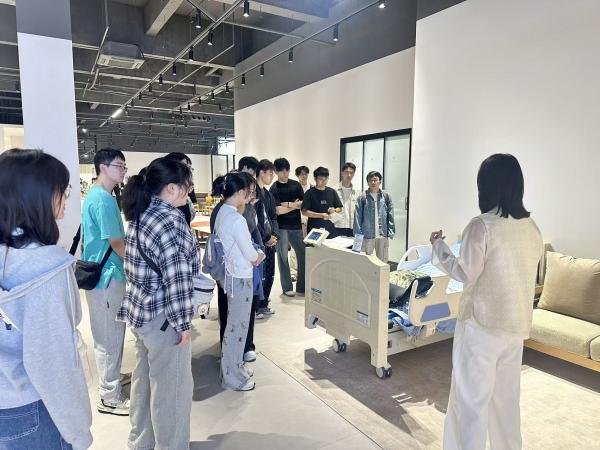 公司領(lǐng)導(dǎo)對學(xué)院師生表示誠摯的歡迎,并對公司情況和產(chǎn)品進(jìn)行了一個(gè)全面系統(tǒng)的介紹。在公司總負(fù)責(zé)人的引導(dǎo)下,師生們有序進(jìn)行家具區(qū)、老年健康監(jiān)測區(qū)、AI睡眠研發(fā)和低空載人飛行器的研發(fā)展示區(qū)域進(jìn)行實(shí)地參觀。AI睡眠研究負(fù)責(zé)人向師生重點(diǎn)展示了為養(yǎng)老院設(shè)計(jì)的一款智能床具,講解了該產(chǎn)品的智能檢測設(shè)計(jì)和調(diào)節(jié)使用并讓師生們親身體驗(yàn)了零壓床墊的效果。結(jié)合學(xué)生的實(shí)時(shí)行為和體驗(yàn)效果以及數(shù)字界面的數(shù)據(jù)分析,展現(xiàn)了該智能床墊的主設(shè)計(jì)點(diǎn)和賣點(diǎn)。最后,師生們還參觀了剛剛參國博展會的低空飛行地面展示機(jī)。直觀的近距離接觸低空載人飛行器引得現(xiàn)場師生頻頻駐足觀察,拍照記錄。“這款飛行器的載重極限是多少?”“在救援場景中如何停放?”“這款低空飛行器與救援直升機(jī)的區(qū)別在哪里?”同學(xué)們不禁提出了相關(guān)專業(yè)問題,低空飛行負(fù)責(zé)人結(jié)合實(shí)際和具體的數(shù)據(jù)說明進(jìn)行了解答。