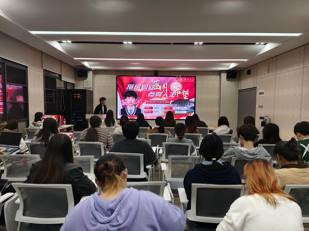 為引導(dǎo)學生科學規(guī)劃職業(yè)生涯,提升就業(yè)競爭力,11月5日晚,藝術(shù)與設(shè)計學院職業(yè)規(guī)劃大賽在一站式學生社區(qū)思德報告廳順利舉行,比賽邀請學生發(fā)展與就業(yè)指導(dǎo)中心祝曉靜、物理學院團委書記鄧玉紅、計算機學院團委書記潘灑及學院輔導(dǎo)員黃佳佳擔任評委。