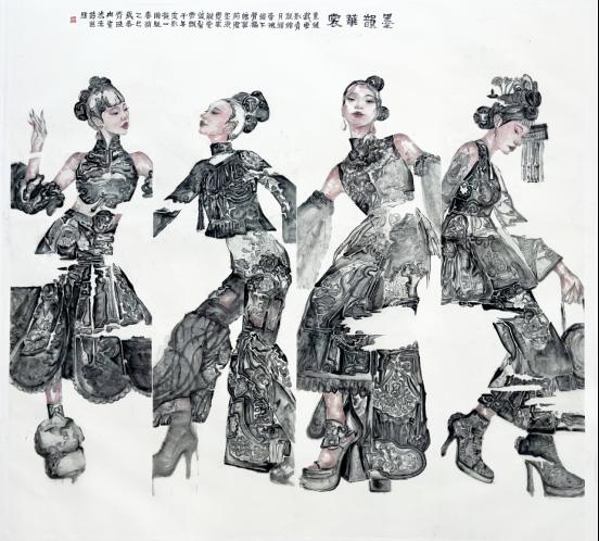 齊曉冉《墨韻華裳》,紙本水墨,196*180cm(指導老師:鄧鴻濤)