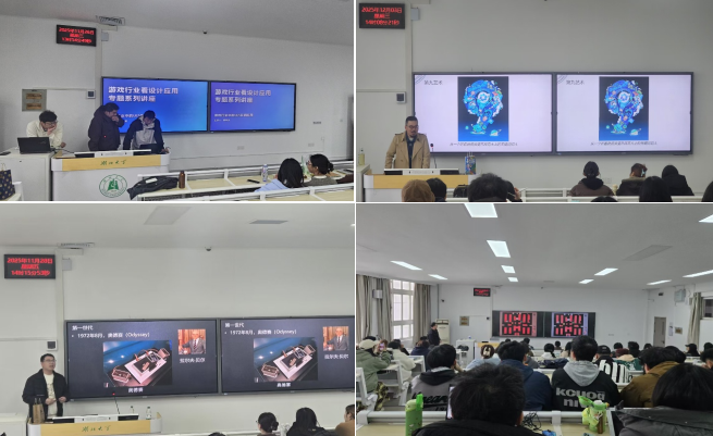 11月26日-12月8日,湖北大學(xué)藝術(shù)與設(shè)計(jì)學(xué)院特邀游戲行業(yè)的多位專家陸續(xù)進(jìn)校為研究生《設(shè)計(jì)理論前沿與創(chuàng)新應(yīng)用》課程進(jìn)行游戲?qū)n}的系列講座。渡漠游戲科技制作人郭妙言、技術(shù)負(fù)責(zé)人劉源峰、游戲配樂負(fù)責(zé)人鄭少澤,金山武漢集團(tuán)孵化中心策劃負(fù)責(zé)人,獨(dú)立游戲創(chuàng)意總監(jiān)劉亮,鈴創(chuàng)科技QA部門負(fù)責(zé)人張家豪及先生走進(jìn)課堂,為設(shè)計(jì)專業(yè)研究生開展游戲設(shè)計(jì)專題系列教學(xué)。多位專家先后分別從行業(yè)技術(shù)實(shí)踐、游戲設(shè)計(jì)方法論、游戲主機(jī)歷史、游戲黑盒Q&A等維度展開系統(tǒng)講授,為學(xué)生構(gòu)建全面感知游戲產(chǎn)業(yè)的全景框架。