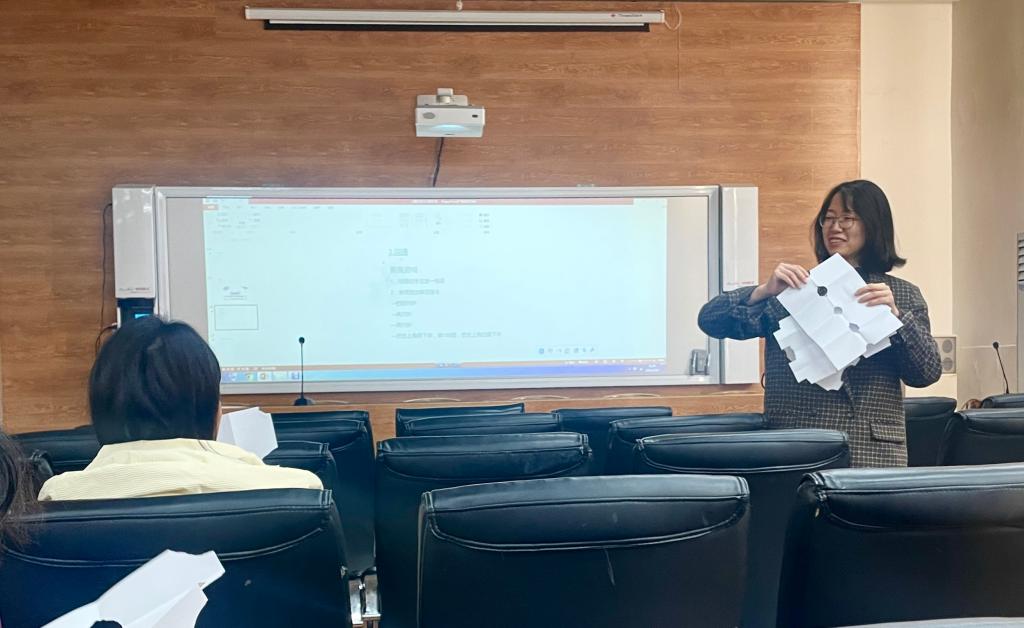 第二部分上,高老師以“依戀”為切入點(diǎn),告訴大家要用心理學(xué)解決自己的人際關(guān)系。讓學(xué)生進(jìn)行自我覺察,用客體關(guān)系理論察覺自己內(nèi)化了什么樣的客體及客體關(guān)系。最后通過視屏和撕紙游戲互動(dòng),表明人際關(guān)系中溝通的重要性。