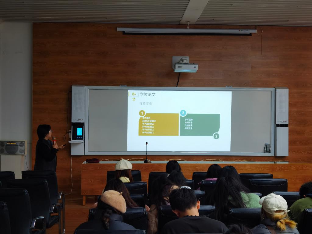 在追求學(xué)術(shù)卓越和研究創(chuàng)新的道路上,研究生培養(yǎng)計(jì)劃的重要性不言而喻。為了幫助2023級(jí)研究生們更好地理解并規(guī)劃自己的學(xué)術(shù)生涯,2023年12月1日下午,由研究生院培養(yǎng)部門(mén)負(fù)責(zé)人胡蓉老師在藝術(shù)學(xué)院C-201做了“研究生日常培養(yǎng)與管理規(guī)范”講座,為同學(xué)們答疑解惑。研究生培養(yǎng)計(jì)劃是提高研究生培養(yǎng)質(zhì)量的關(guān)鍵,希望通過(guò)本次講座,同學(xué)們能夠更加深入地了解研究生培養(yǎng)計(jì)劃的內(nèi)涵、目標(biāo)和實(shí)施策略,為自己的研究生生涯規(guī)劃提供有益的參考。