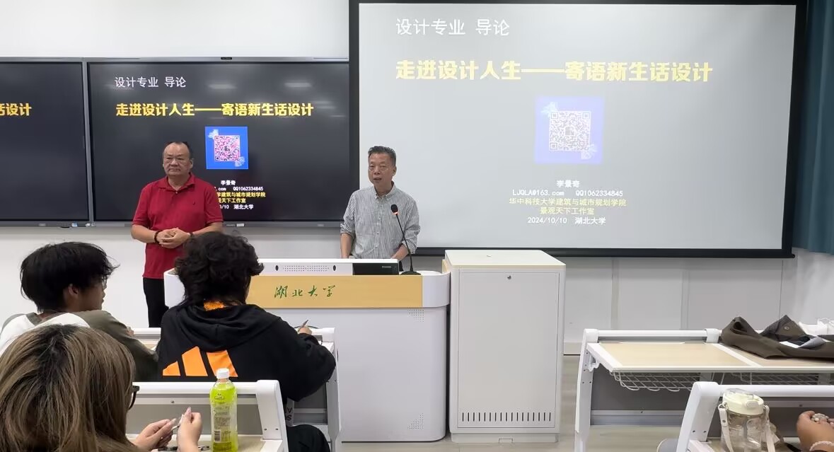 10月10日晚,學(xué)院邀請李景奇教授為新生授課,李景奇教授是華中科技大學(xué)景觀學(xué)系創(chuàng)始人之一、原景觀系主任、中國城科會景觀學(xué)與美麗中國建設(shè)專業(yè)委員會委員,其開展主題講座“走進(jìn)設(shè)計(jì)人生”,藝術(shù)與設(shè)計(jì)學(xué)院院長葉云教授主持,近兩百位學(xué)生到場就座。