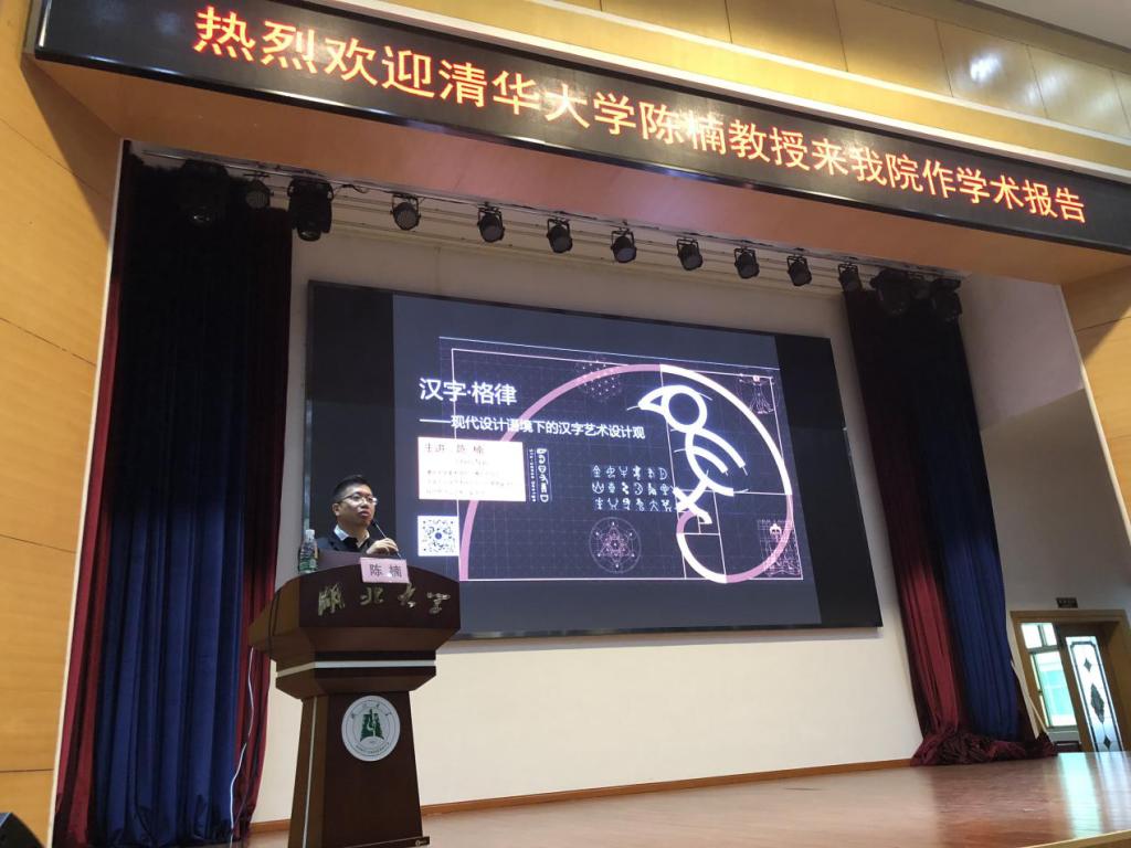 10月15日上午,清華大學(xué)陳楠教授以“漢字·格律——現(xiàn)代設(shè)計(jì)語境下的漢字藝術(shù)設(shè)計(jì)觀”為主題的學(xué)術(shù)報(bào)告活動在湖北大學(xué)三號報(bào)告廳隆重舉行。