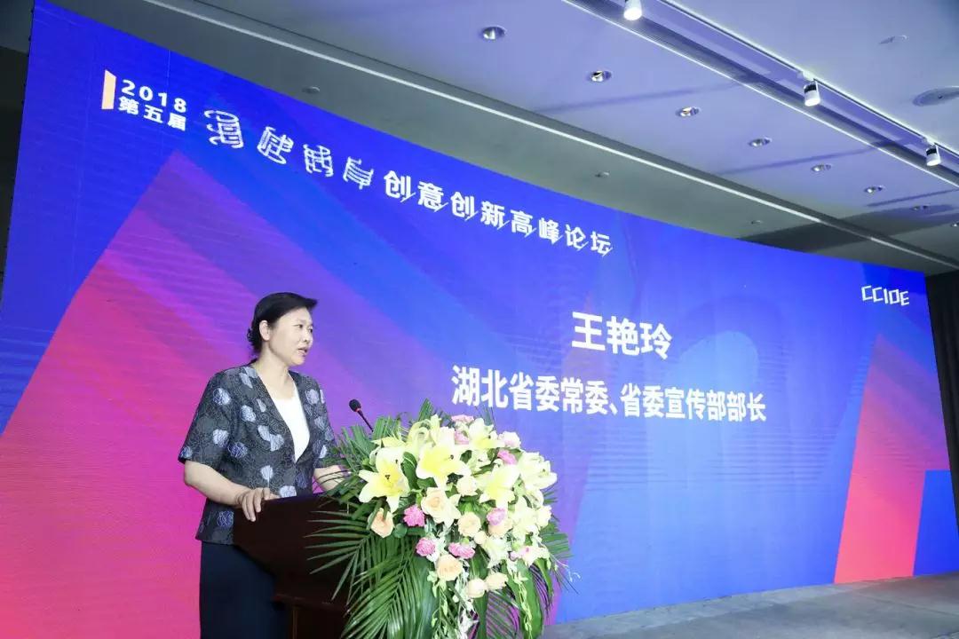湖北省委常委、宣傳部部長王艷玲出席高峰論壇并宣布“2018 CCIDE第五屆海峽兩岸創(chuàng)意創(chuàng)新高峰論壇”開幕。