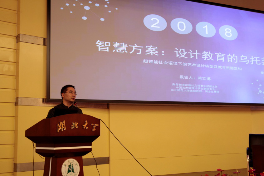 高等教育出版社文科事業(yè)部副主任全國(guó)藝術(shù)理論學(xué)會(huì)副秘書(shū)長(zhǎng)、博導(dǎo)蔣文博教授正在進(jìn)行演講