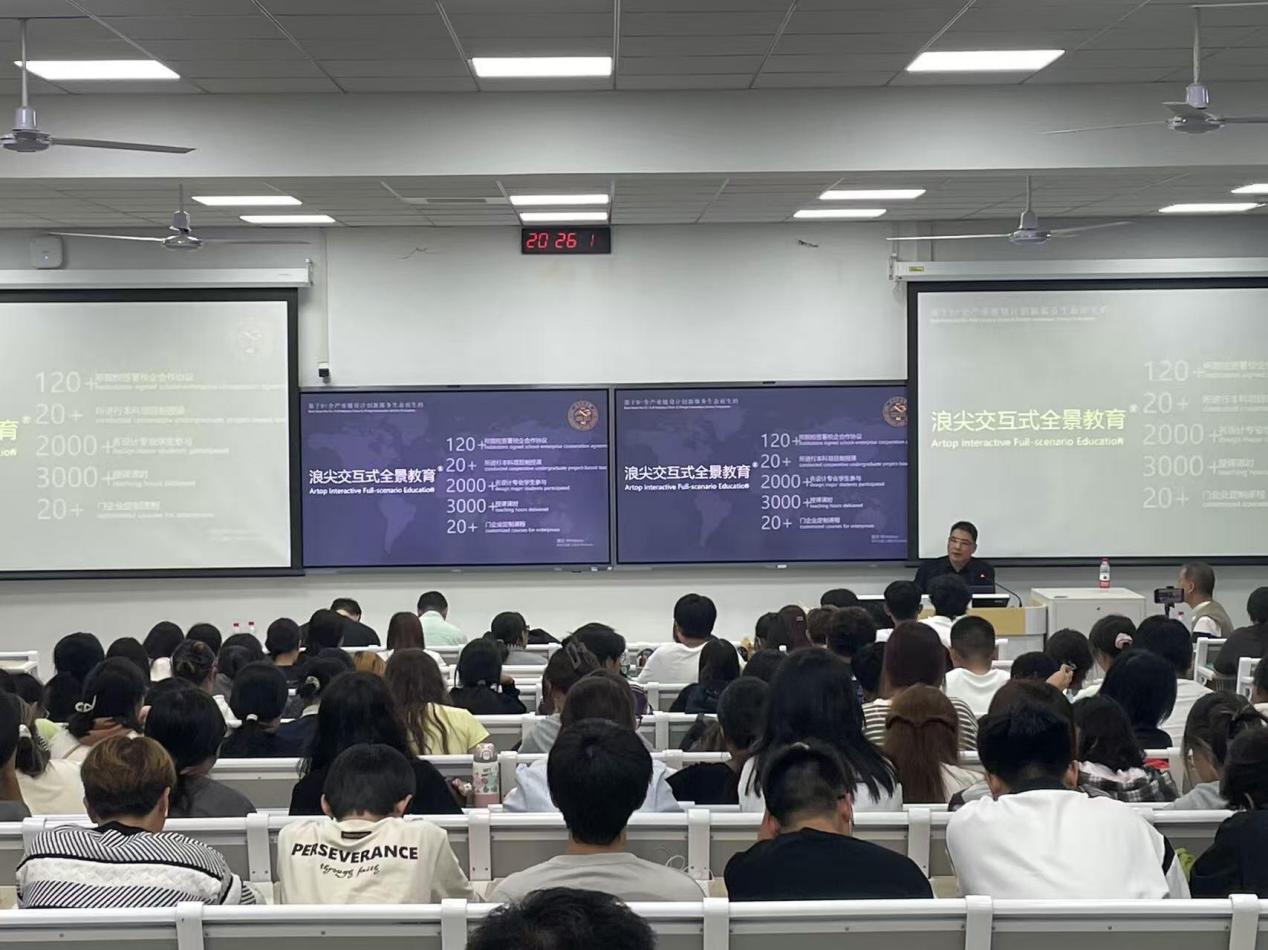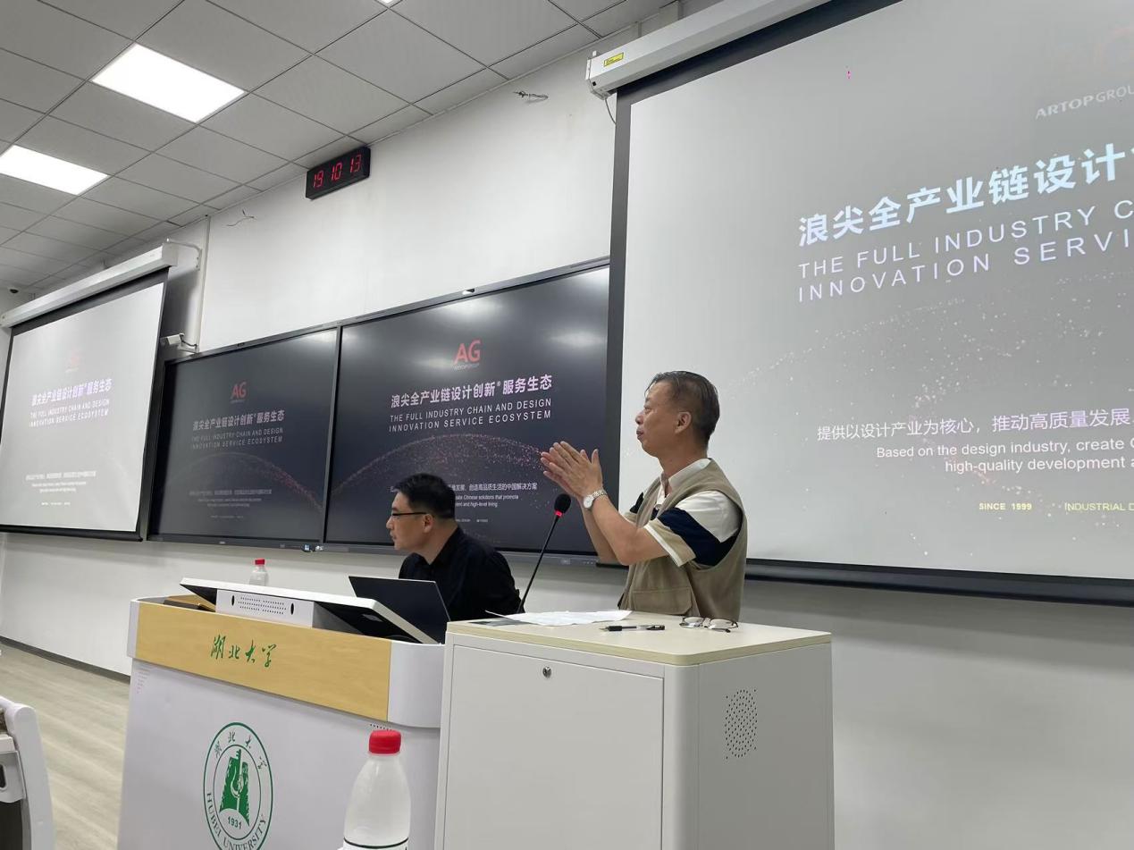 李少康先生又講述設(shè)計要因地制宜,從區(qū)域經(jīng)濟結(jié)構(gòu)到社會發(fā)展,利用我國優(yōu)勢,利用我國各地區(qū)優(yōu)勢來推動產(chǎn)品、產(chǎn)業(yè)、社會發(fā)展。我國在產(chǎn)品設(shè)計行業(yè)中不只利用自己的優(yōu)勢,相對應還會開展國際交流,吸收國外優(yōu)秀設(shè)計思維理念促使我們自己設(shè)計行業(yè)發(fā)展更加持續(xù)穩(wěn)定。李少康先生還向?qū)W生們介紹了浪尖交互式全景教育,以接待、參觀、建立工作坊的方式讓學生們體驗產(chǎn)品設(shè)計的流程,讓學生們更近距離接觸產(chǎn)品設(shè)計。