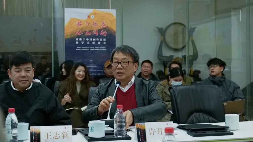 最后,研討會(huì)承辦方代表許開(kāi)強(qiáng)教授講話(huà),他說(shuō),非常感謝尚輝教授和參加研討會(huì)的大師們能在萬(wàn)忙之中來(lái)出席參加董繼寧教授的學(xué)術(shù)研討會(huì),感謝對(duì)董老師的藝術(shù)和人生進(jìn)行的精妙點(diǎn)評(píng)、對(duì)他的藝術(shù)創(chuàng)作與成果的高度肯定和評(píng)論。專(zhuān)家們的發(fā)言高屋建瓴,思想深邃,既是對(duì)董繼寧教授藝術(shù)創(chuàng)作的高度評(píng)價(jià),也是對(duì)我們藝術(shù)學(xué)院的工作指導(dǎo),讓我們?nèi)玢宕猴L(fēng),如飲甘露,深受教益與啟發(fā)。研討會(huì)結(jié)束后,我們將認(rèn)真學(xué)習(xí)領(lǐng)會(huì)專(zhuān)家們都真知灼見(jiàn),并以研討會(huì)為契機(jī),努力奮進(jìn),把新時(shí)代藝術(shù)人才培養(yǎng)工作做得更好。