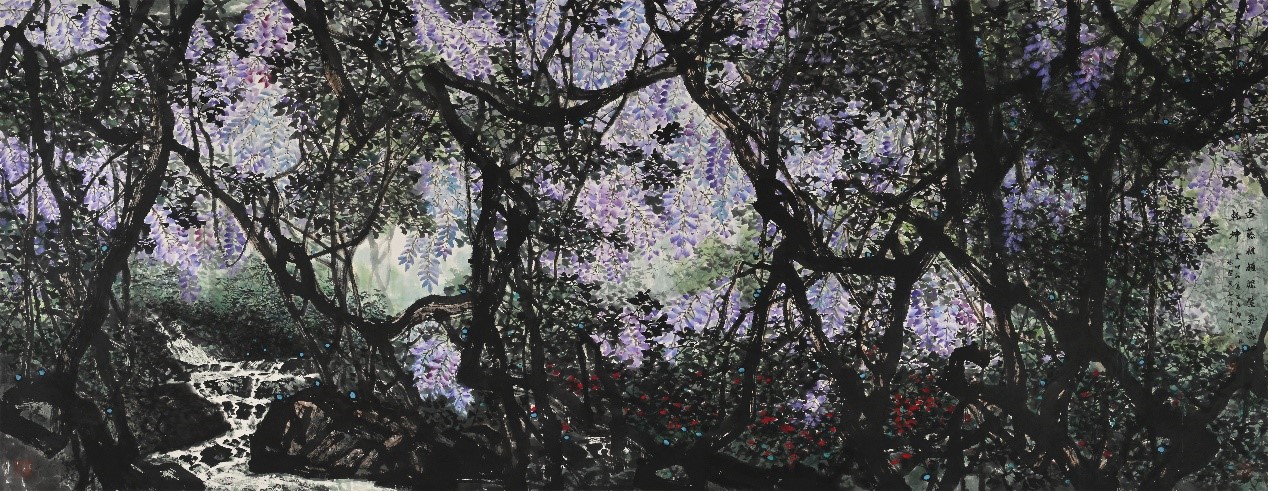 款識(shí):古藤根植深紫氣滿(mǎn)乾坤 癸卯初夏寫(xiě)赤壁陸水林場(chǎng)紫藤谷所見(jiàn) 繼寧 |