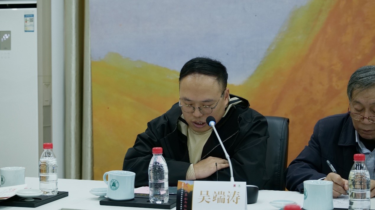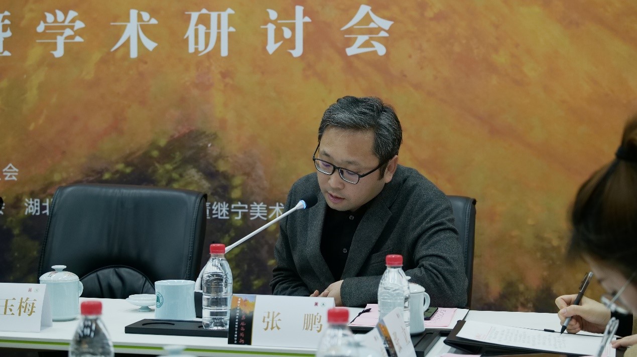 湖北省美術(shù)家協(xié)會(huì)駐會(huì)副主席、湖北美術(shù)學(xué)院科研創(chuàng)作處長(zhǎng)王志新發(fā)言:從湖北省美協(xié)的職能角度出發(fā),總結(jié)了并肯定了董繼寧教授對(duì)湖北繪畫(huà)界的貢獻(xiàn)與推動(dòng)、引領(lǐng)作用。