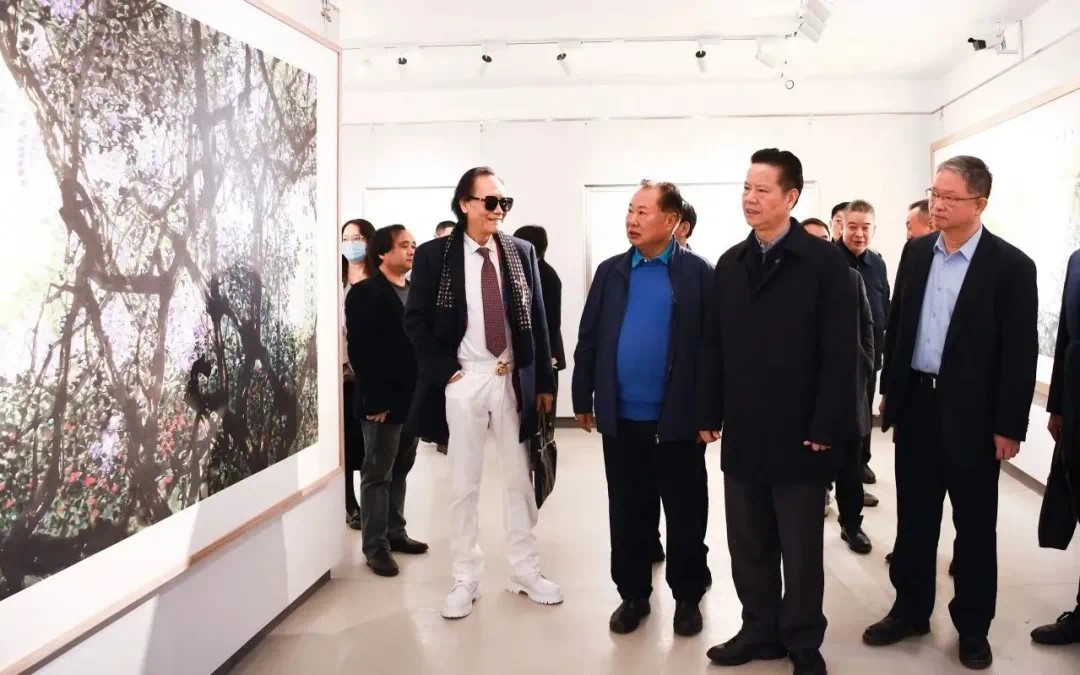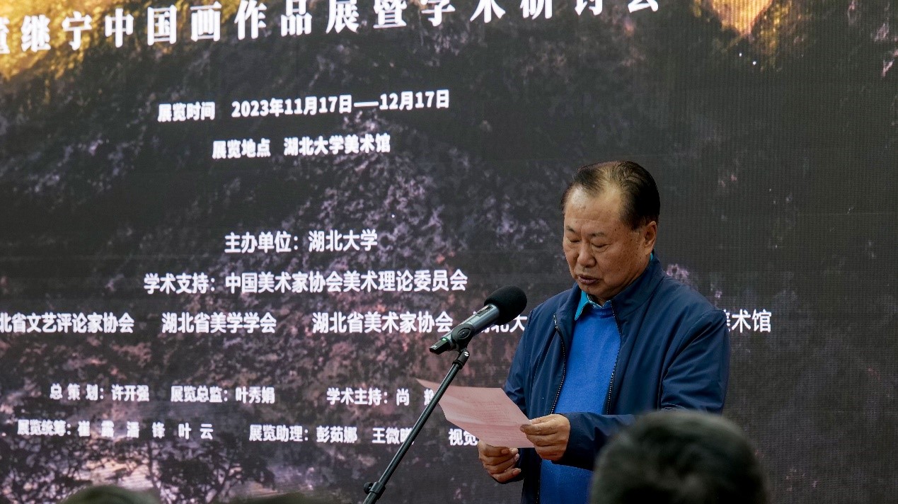 開(kāi)幕儀式由湖北大學(xué)藝術(shù)學(xué)院院長(zhǎng)許開(kāi)強(qiáng)教授主持。湖北大學(xué)黨委常委檀坤華、中國(guó)美術(shù)家協(xié)會(huì)美術(shù)理論委員會(huì)主任尚輝、湖北省文聯(lián)副主席王永平為本次開(kāi)幕式致辭。檀坤華先生認(rèn)為,“董繼寧長(zhǎng)期從事中國(guó)山水畫(huà)創(chuàng)作、研究與教學(xué)、繼承與創(chuàng)新,形成了自己的藝術(shù)風(fēng)格和個(gè)人體系。”尚輝先生指出,“從上世紀(jì)五六十年代寫(xiě)生山水畫(huà)改良至今,向西方藝術(shù)文化的不斷學(xué)習(xí),中國(guó)山水畫(huà)該如何發(fā)展,‘家山無(wú)恙 風(fēng)雨同行——董繼寧中國(guó)畫(huà)作品展’給出了我們答案,通過(guò)此次展覽,我們?cè)谧髌分畜w驗(yàn)了董繼寧不僅體驗(yàn)家鄉(xiāng)景色的變化,也感受到頑強(qiáng)生命所飽含的中國(guó)精神。董繼寧在此次系列作品中汲取了寫(xiě)生山水的創(chuàng)作,又加以對(duì)現(xiàn)實(shí)山水的學(xué)習(xí),將我們傳統(tǒng)水墨與新時(shí)代水墨有了一個(gè)很好的鏈接。正是董教授不斷探新求我的精神,推動(dòng)了我們當(dāng)代中國(guó)山水畫(huà)的發(fā)展。”王永平先生強(qiáng)調(diào),“在傳統(tǒng)文化和主流文化的發(fā)展中,我們應(yīng)該致力于創(chuàng)新,在藝術(shù)作品中追求個(gè)性化、時(shí)代化。董繼寧畫(huà)家的作品描繪了我們遼遠(yuǎn)壯闊的祖國(guó)山河,在他的作品中彰顯著荊楚文化、民族文化,體現(xiàn)了民族精神與時(shí)代精神。”畫(huà)家董繼寧先生表示,此次展覽是他多年來(lái)藝術(shù)生涯的一個(gè)重要節(jié)點(diǎn),也是他對(duì)家鄉(xiāng)、對(duì)祖國(guó)的一份心意。“藝術(shù)家所創(chuàng)作的作品于自己而言體現(xiàn)的一種人文關(guān)懷,而對(duì)于觀者而言是一種對(duì)生命的體驗(yàn)、思考,所以我們?cè)趧?chuàng)作中更多的應(yīng)該對(duì)于真善美的追求。”十三屆全國(guó)政協(xié)文化文史和學(xué)習(xí)委員會(huì)副主任、省政協(xié)原主席張昌爾在宣布展覽開(kāi)幕前回憶道:“我在省委工作時(shí),湖北大學(xué)是我的聯(lián)系點(diǎn),對(duì)于湖北大學(xué)領(lǐng)導(dǎo)班子建設(shè)高度關(guān)注,湖北大學(xué)的一草一木的變化我們都?xì)v歷在目,董繼寧是湖北美術(shù)界的臺(tái)柱子,畫(huà)展在湖北大學(xué)舉辦,這幾個(gè)因素讓我高興地來(lái)到湖北大學(xué)參加他的展覽。”據(jù)了解,共300余人參加了上午的展覽開(kāi)幕式,來(lái)自北京、四川和省內(nèi)的美術(shù)理論評(píng)論家、文藝批評(píng)家和美學(xué)家60余人參加了董繼寧中國(guó)畫(huà)作品研討會(huì),對(duì)董繼寧教授的創(chuàng)作作品給予了高度評(píng)價(jià)。