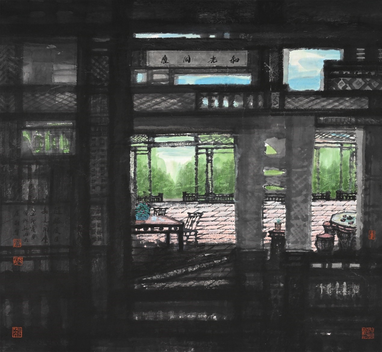 款識(shí):明清老屋學(xué)堂窩 壬寅春月寫(xiě)鄂南咸寧長(zhǎng)壽村印象咸寧 |