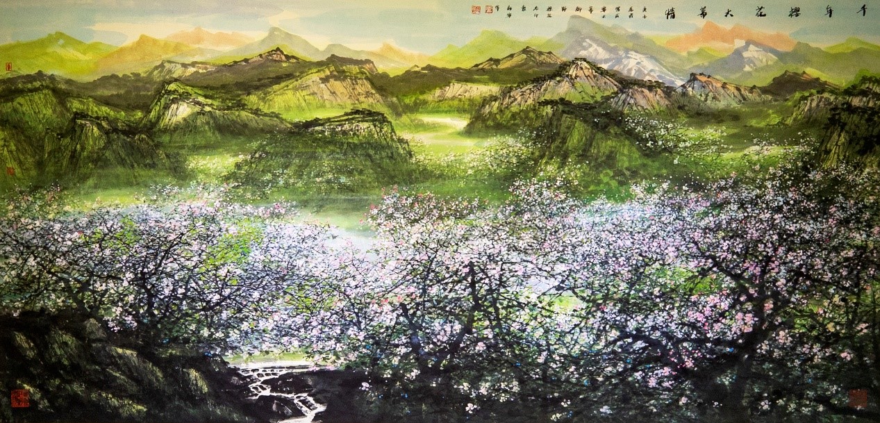 款識(shí):庚子尾歲寫(xiě)咸寧大幕山鄉(xiāng) 野櫻花谷印象 繼寧作 |