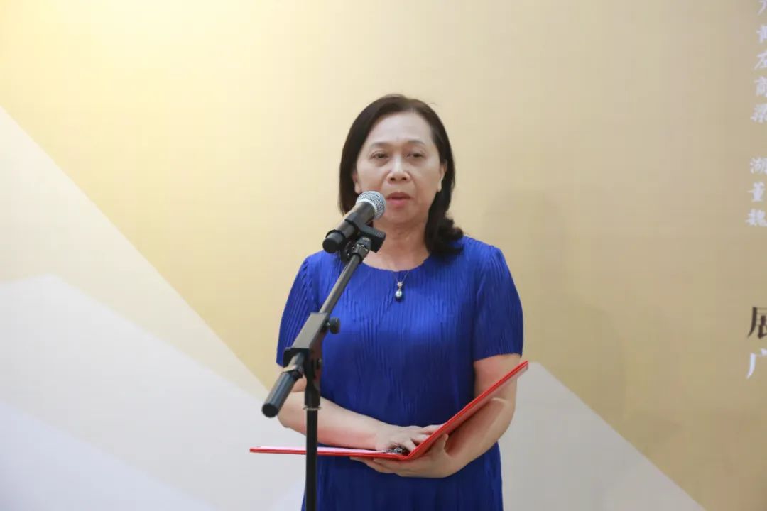 (廣西藝術學院黨委常委、總會計師韋春靈宣布畫展開幕)
