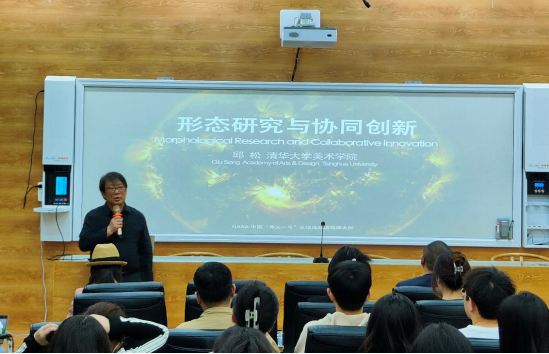 為深入開展藝術(shù)學(xué)院學(xué)習(xí)貫徹習(xí)近平新時代中國特色社會主義思想主題教育讀書班活動,學(xué)習(xí)藝術(shù)設(shè)計學(xué)科前沿發(fā)展形勢,5月6日下午,清華大學(xué)美術(shù)學(xué)院教授、博士生導(dǎo)師邱松應(yīng)邀來到我院,為師生帶來一場題為“形態(tài)研究與協(xié)同創(chuàng)新”的主題講座。講座在藝術(shù)學(xué)院C201會議室進行,由院長許開強教授主持,學(xué)院師生代表參加了本次學(xué)術(shù)活動。