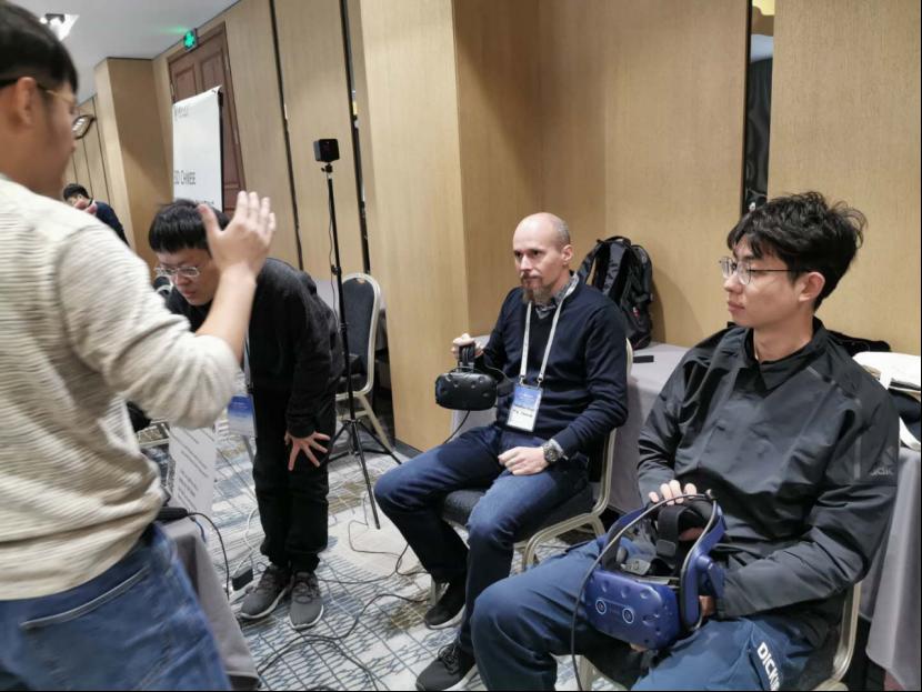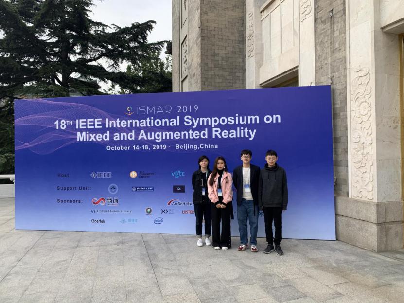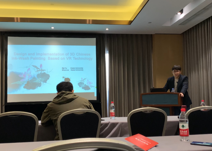 近日,從剛剛閉幕的2019 International Workshop on Augmented Reality and Mixed Reality Technology for Ubiquitous Educational Learning Experience和18th IEEE International Symposium on Mixed and Augmented Reality(ISMAR 2019·Bei Jing)上獲悉,我校余日季教授指導(dǎo)的研究生團(tuán)隊(duì)成員劉舜、葉師舒、李文靖和蔣帥最新研究成果亮相本次大會(huì)。劉舜撰寫的論文《Design and Implementation of 3D Chinese Ink-wash Painting based on VR Technology》入選大會(huì)的學(xué)術(shù)研討會(huì),并在W6: AR & MR Technology for Ubiquitous Educational Learning Experience發(fā)表了論文相關(guān)主題演講,團(tuán)隊(duì)數(shù)字創(chuàng)意作品《3D Chinese ink-wash painting VR experience》和《VR Interactive Display And Experience For Lightning Defense Knowledge》均入選大會(huì)的Demo Session,并在Demonstration Hall進(jìn)行展出。
