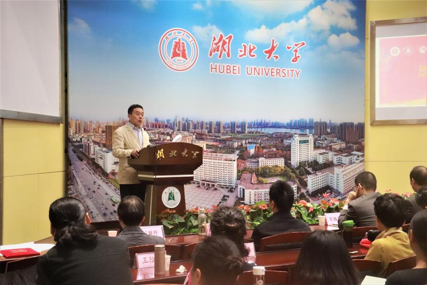 2018年10月29日,中國非物質(zhì)文化遺產(chǎn)傳承人群研修研習(xí)培訓(xùn)計劃—“2018楚劇傳承人群培訓(xùn)班”開班儀式在我校思誠廳舉行。湖北大學(xué)黨委書記尚鋼,湖北省文化廳非物遺處有關(guān)負(fù)責(zé)同志,湖北大學(xué)藝術(shù)學(xué)院院領(lǐng)導(dǎo)黃家發(fā)書記,湖北大學(xué)校辦柯志堅主任、社科處處長邵俊青、學(xué)工部部長劉靖君、團委書記萬路路,繼續(xù)教育學(xué)院副院長何兆清,以及來自中國戲曲學(xué)院、華中師范大學(xué)等高校和專業(yè)劇團的任課教師代表近20人、培訓(xùn)班的50名學(xué)員,參與了此次開班典禮,藝術(shù)學(xué)院副院長華勇教授主持會議。