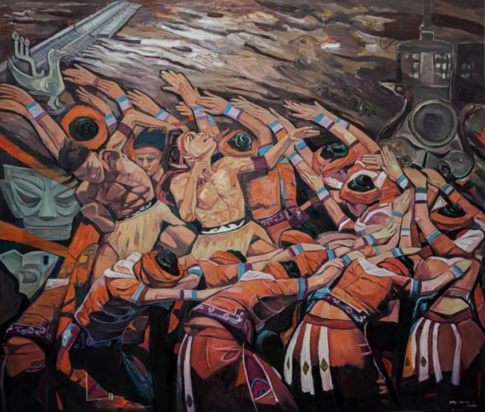 油畫(huà)《長(zhǎng)江潮——母親河》。尺寸:180cm*210cm