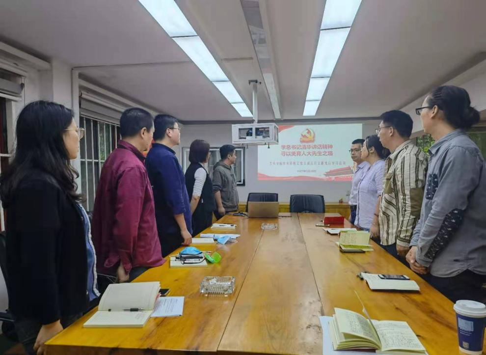 在完成重溫入黨誓詞、交黨費等規(guī)定動作后,支部黨員集中觀看和學習了習近平總書記在考察清華大學時發(fā)表重要講話視頻和《中共教育部黨組關于教育系統(tǒng)深入學習貫徹習近平總書記在清華大學考察時重要講話精神的通知》等重要精神。支部黨員結合專業(yè)特點,重點圍繞總書記關于“發(fā)揮美術在服務經濟社會中的重要作用“以及“教師要成為大先生,做學生為學、為事、為人的示范”等重要論述、立足如何在以美育人的角度發(fā)揮美術學科專業(yè)優(yōu)勢開展工作等話題交流和討論。