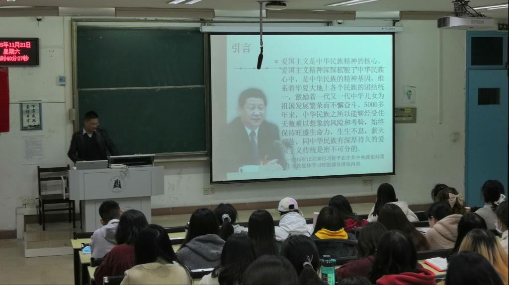 11月21日下午,化學(xué)化工學(xué)院黨委副書記劉懷元以“做忠誠(chéng)的愛(ài)國(guó)者”為主題進(jìn)行了輔導(dǎo)報(bào)告。報(bào)告會(huì)上,他首先解釋了愛(ài)國(guó)和愛(ài)國(guó)主義的內(nèi)涵,以及愛(ài)國(guó)在中華民族的歷史中的傳承歷程,向大家介紹了中國(guó)共產(chǎn)黨歷史上的愛(ài)國(guó)人士,并闡明了大學(xué)生弘揚(yáng)愛(ài)國(guó)主義精神的重要性。接著,他還講解了個(gè)人與國(guó)家的關(guān)系,強(qiáng)調(diào)愛(ài)國(guó)的重要性,并聯(lián)系時(shí)事熱點(diǎn),談到了香港問(wèn)題、港珠澳大橋、南海問(wèn)題等,指出愛(ài)國(guó)是中國(guó)人必備的精神品質(zhì)。最后,劉懷元副書記著重就在座的青年大學(xué)生應(yīng)該如何發(fā)揚(yáng)自己的愛(ài)國(guó)主義精神作了闡述,即了解祖國(guó)歷史,維護(hù)祖國(guó)統(tǒng)一,擁護(hù)黨的領(lǐng)導(dǎo),做忠誠(chéng)的愛(ài)國(guó)者,立志成才報(bào)效祖國(guó)。他寄語(yǔ)全體學(xué)員,希望大家以建設(shè)祖國(guó)為目標(biāo),堅(jiān)持努力,根據(jù)黨章黨規(guī),規(guī)范自身的言行舉止,承擔(dān)社會(huì)責(zé)任,明確入黨目標(biāo)與態(tài)度,不忘初心,砥礪前行。