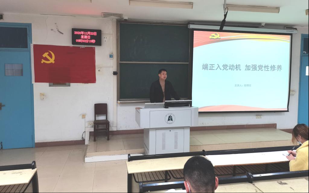 11月22號(hào)上午,藝術(shù)學(xué)院黨委副書記歐明任以“端正入黨動(dòng)機(jī) 加強(qiáng)黨性修養(yǎng)”為題作輔導(dǎo)報(bào)告。本次報(bào)告中歐書記結(jié)合世情黨情國(guó)情和高等教育發(fā)展歷程引領(lǐng)大家一起學(xué)習(xí),事例鮮活,就入黨動(dòng)機(jī)的含義、入黨動(dòng)機(jī)類型、入黨動(dòng)機(jī)類型演變、影響入黨動(dòng)機(jī)的內(nèi)外因素、端正入黨動(dòng)機(jī)的首要條件和如何端正入黨動(dòng)機(jī)進(jìn)行了闡述。他向全體學(xué)員提出三點(diǎn)希望:一是要踐行終身學(xué)習(xí),認(rèn)真地學(xué)習(xí)政治理論知識(shí)和習(xí)近平總書記系列重要講話精神。二是要踐行學(xué)以致用,自覺(jué)地在履行好學(xué)生職責(zé)中發(fā)揮好先鋒模范作用;三是要踐行完善發(fā)展,經(jīng)常地對(duì)照黨章和有關(guān)要求找差距,整改完善。