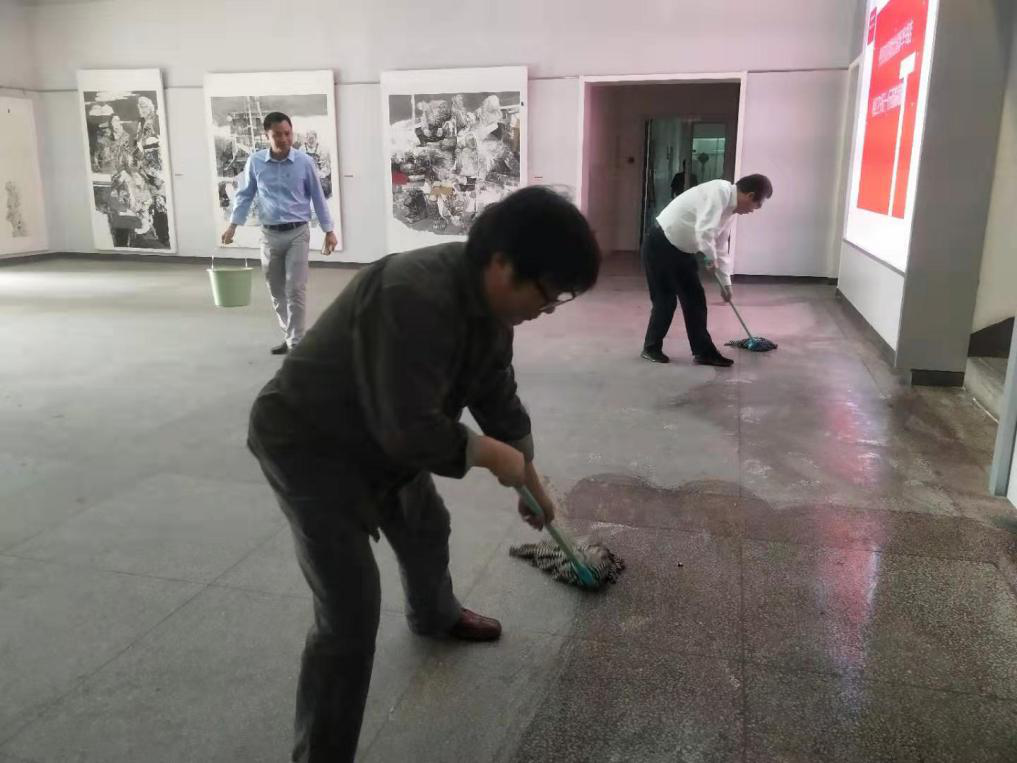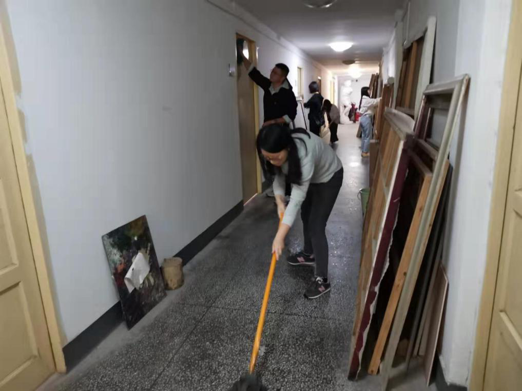為貫徹落實學(xué)校“不忘初心、牢記使命”主題教育工作要求,深入推進學(xué)院“環(huán)境育人”工作,更好發(fā)揮學(xué)院師生黨員同志在立德樹人工作中的模范帶頭作用。10月30日下午,在學(xué)院黨委號召下,領(lǐng)導(dǎo)班子成員的率先垂范下,藝術(shù)學(xué)院全體師生黨員“黨員活動日”衛(wèi)生大掃除活動如火如荼的展開了。