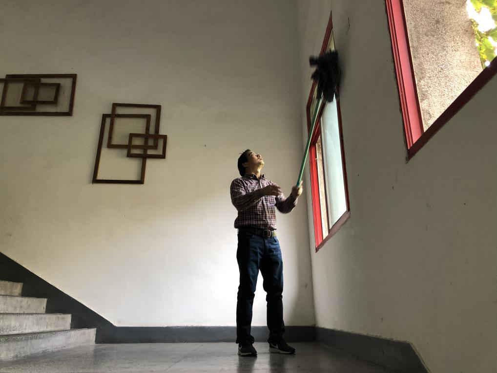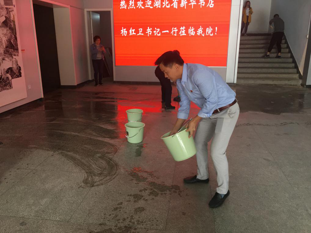 院黨委書記黃家發(fā)、院長許開強、副書記歐明任、副院長華勇及全院4個教工黨支部、4個學(xué)生黨支部的黨員們紛紛接過拖把、抹布、水桶等工具,分別在學(xué)院大樓四個片區(qū)緊鑼密鼓地開始了今天下午的大掃除活動。