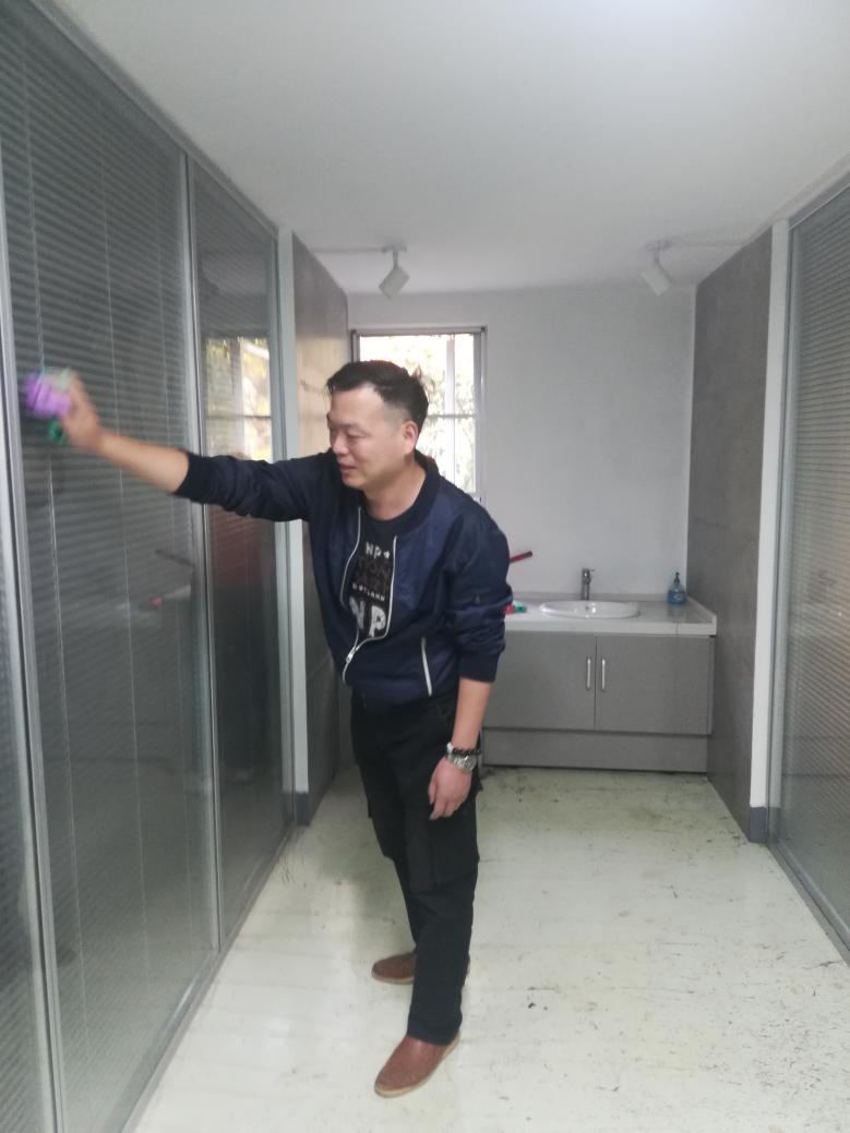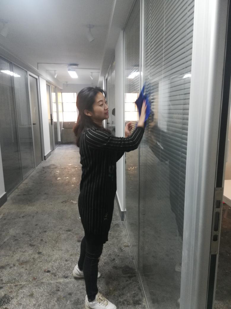 掃地、拖地、擦門窗,各小組分工明確有條不紊,雖然各位教師黨員們大汗淋漓,卻一個個面帶笑容、激情滿滿,真正將黨員先鋒模范作用展現(xiàn)了出來。