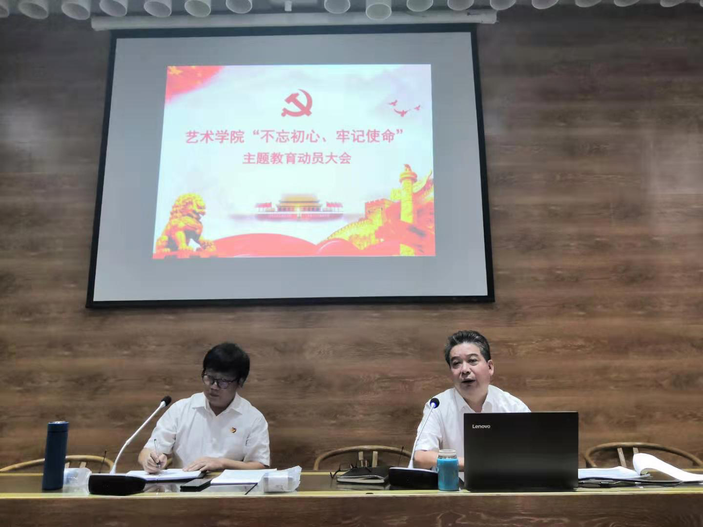 學(xué)院黨委書記黃家發(fā)作動員報告,首先全面闡述了開展主題教育的現(xiàn)實(shí)背景和重大意義,同時也對主題教育應(yīng)知應(yīng)會有關(guān)內(nèi)容進(jìn)行了介紹和強(qiáng)調(diào)。接著從總體要求、目標(biāo)任務(wù)、工作安排和組織領(lǐng)導(dǎo)對《藝術(shù)學(xué)院“不忘初心、牢記使命”主題教育實(shí)施方案》進(jìn)行了詳細(xì)的解讀。